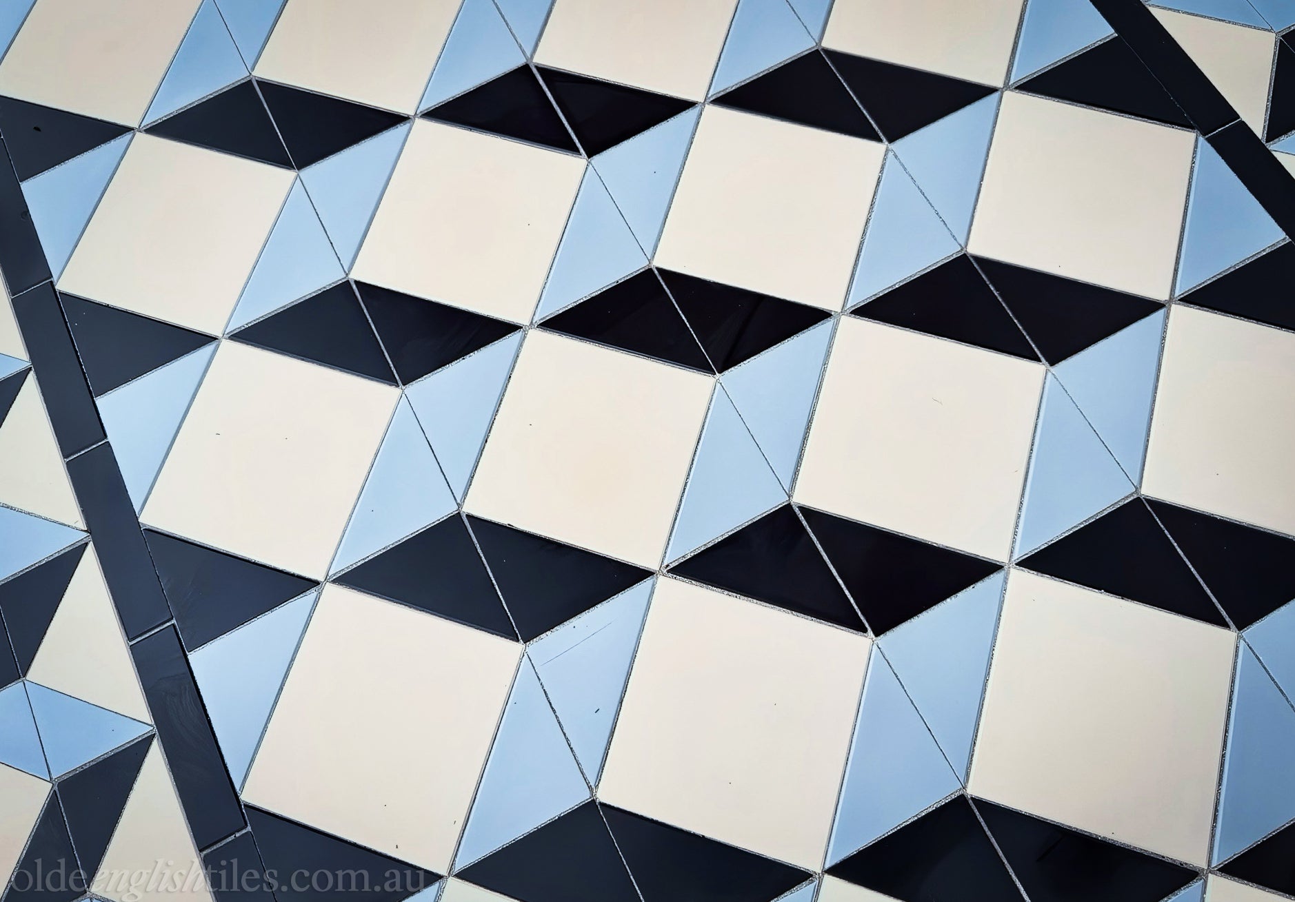 A charming Marrickville home with plenty of character deserved an entrance to match. We supplied and installed the Killara pattern — a bold geometric design customised with the colours Light Blue, Black and Super White. The pattern complements the home’s period features and freshly painted blue door, creating a welcoming entrance with quiet confidence and enduring style.