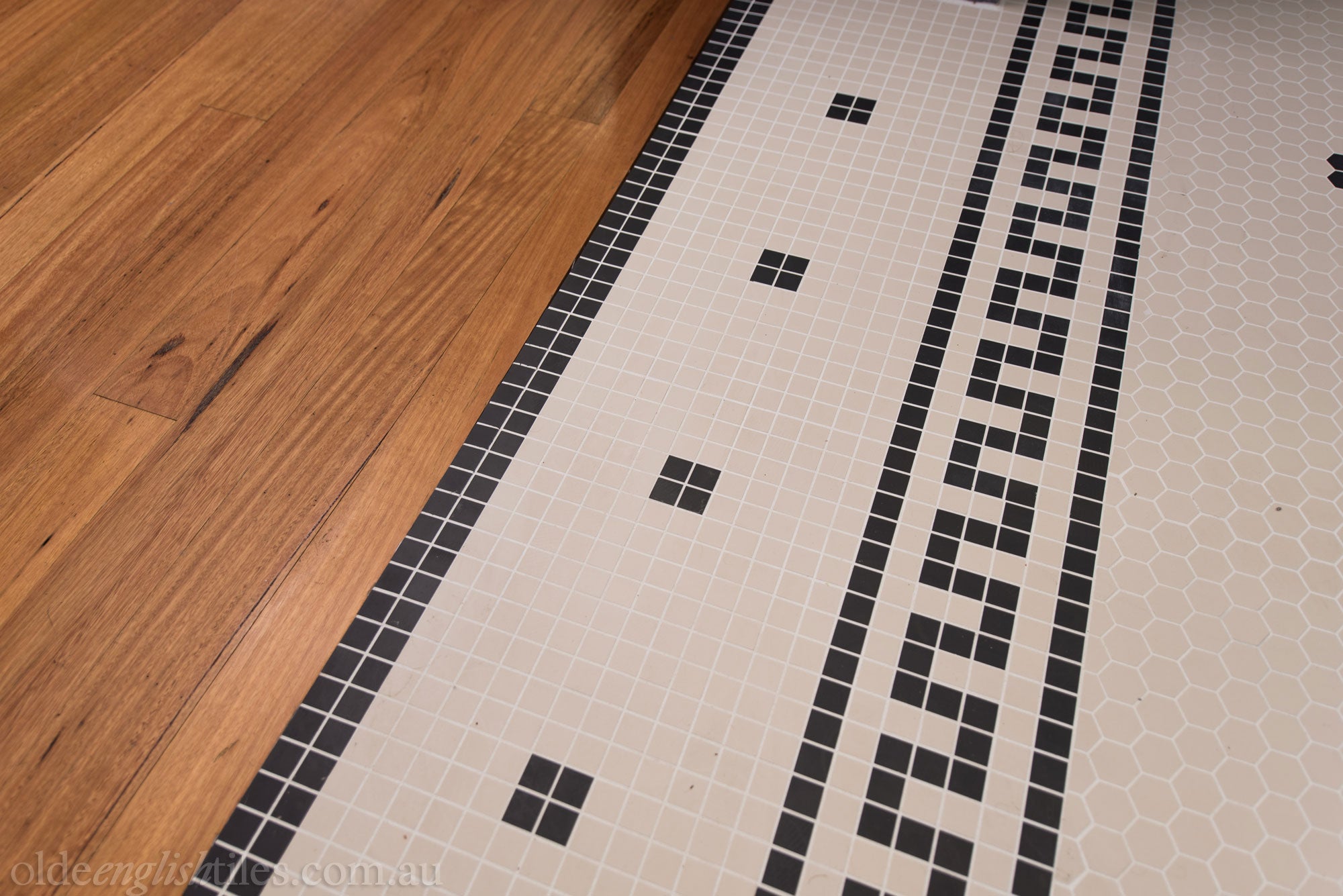 Timeless mosaics on the floor are paired with an elegant Art Deco stairway and entice guests to take a nostalgic climb at this Neutral Bay home.