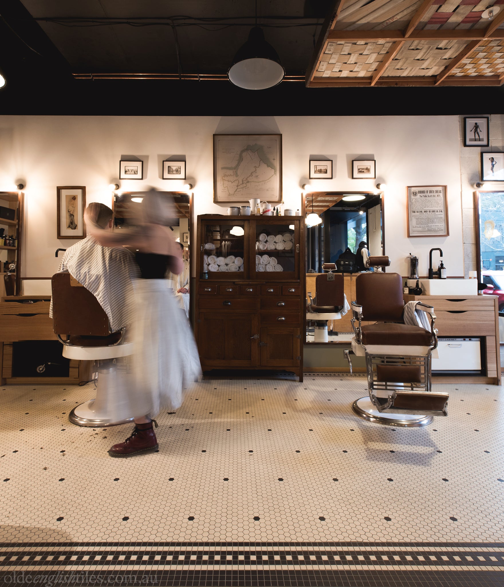 Pickings & Parry aspire to lead the charge in a return to days passed and the design of their emporium reflect this -warm timber, vintage barber chairs and beautiful hexagon floor pattern supplied by Olde English Tiles.
