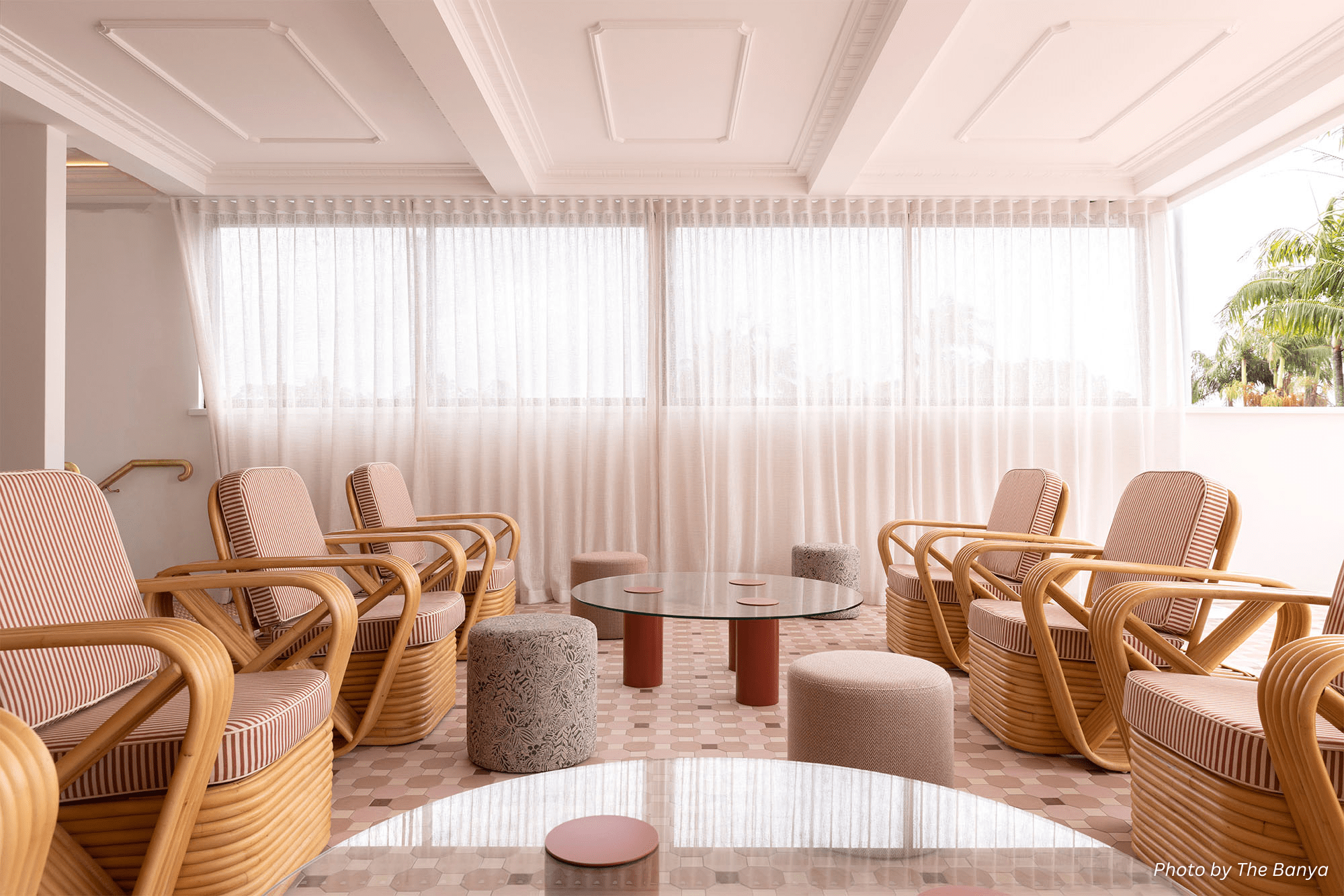Owner, Brenden Lawless, with his appreciation for old-world style, wanted to breathe new life into an old brick building, while preserving its 1920s structure. Combining raw brick, herringbone timber, leather, terrazzo, marble, mosaics and a sumptuous pink tessellated floor - Olde English Tiles' Marais pattern, under coffered ceilings and the Byron sun, 'The Banya' is a modern twist on the ancient bathhouse tradition - an immersive social, bathing and dining experience.