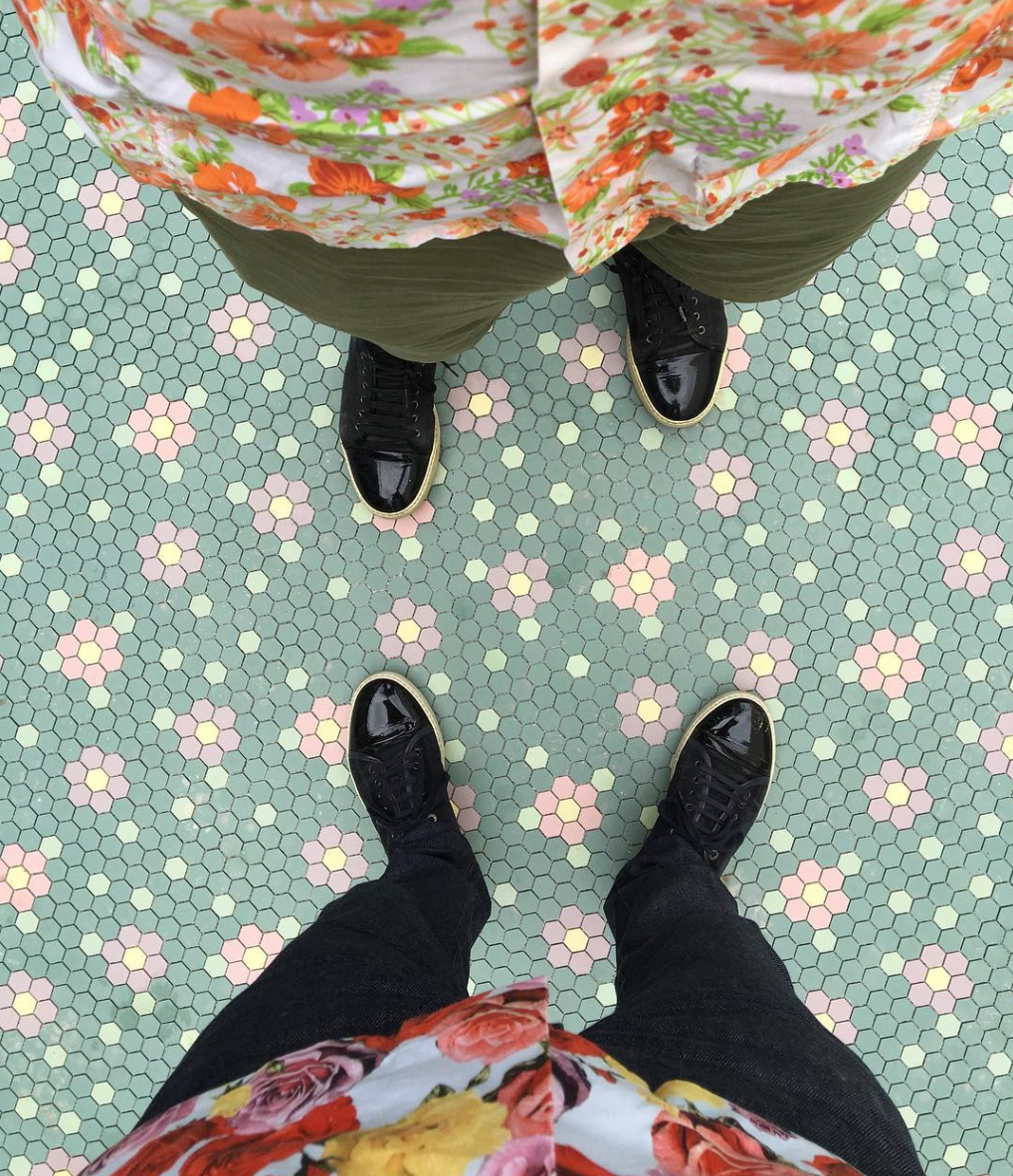 Weston’s ‘Field of Flowers’ mosaic pattern references the lush green landscape fields, designed in two tonal green hexagonal tiles interspersed with alternating light mauve and dusty pink flowers with butter yellow pollen centres.