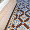 In each case, we hand-glazed the accent wall tiles in heritage colours to coordinate with our mosaic floors - just another example of our ability to respond to unique and challenging design requirements.