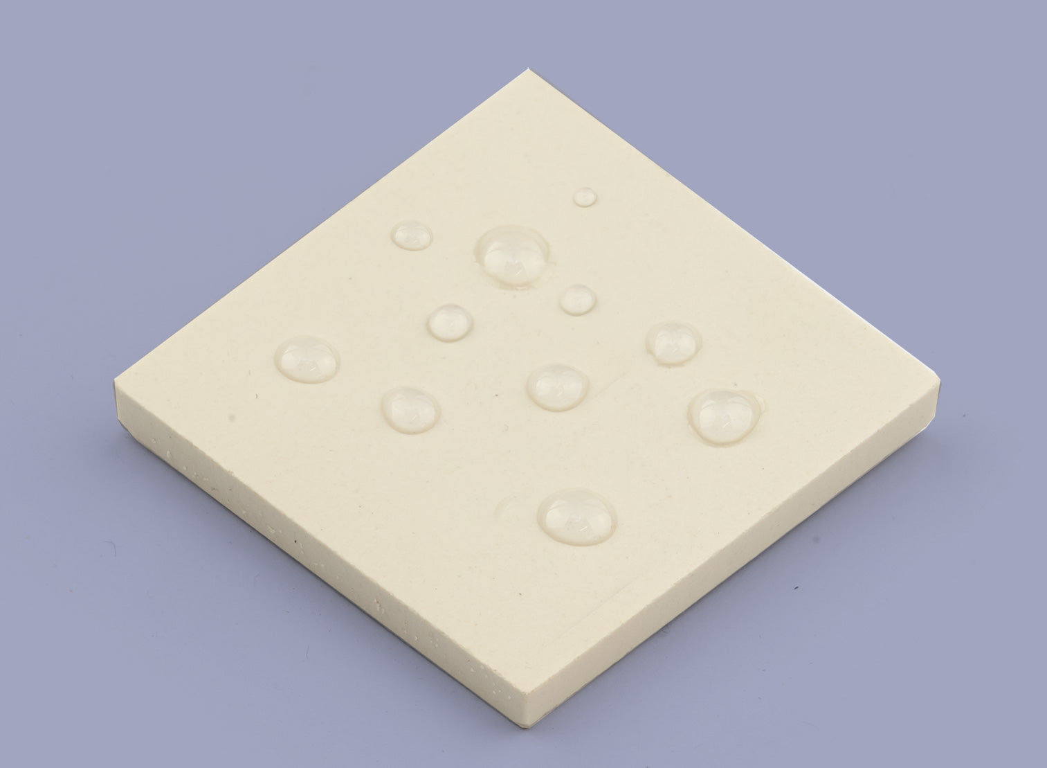 A mixture of clay, quartz and other materials are tightly compacted through a hydraulic press. -